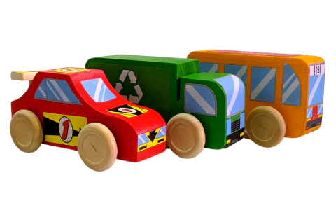 Variantes disponibles: Auto de carrera, colectivo/autobus, camión reciclador.